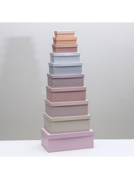 Набор коробок 10 в 1, упаковка подарочная, «Нежный», 12 х 7 х 4 — 32.5 х 20 х 12.5 см. <ul> <li> 12 х 7 х 4 см</li> <li> 14 х 8.4 х 4.5 см</li> <li> 15 х 9.5 х 5.5 см</li> <li> 18 х 11 х 6.5 см</li> <li> 20 х 12.5 х 7.5 см</li> <li> 22 х 14 х 8.5 см</li> <li> 24 х 15.5 х 9.5 см</li> <li> 26 х 17 х 10 см</li> <li> 28 х 18.5 х 11.5 см</li> <li> 32.5 х 20 х 12.5 см</li> </ul>