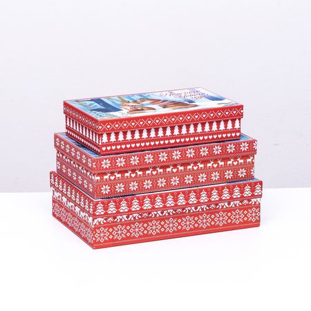 Набор коробок 3 в 1 «Лесные животные», 29×19×8 — 24×14×5 см. Набор коробок универсальный. Изготовлен из плотного картона. Прекрасно подойдет для оформления подарка, и праздничного декора. Можно использовать для хранения аксессуаров. <strong> Преимущества:</strong> <ul> <li> плотный картон;</li> <li> оригинальное оформление;</li> <li> удобно при транспортировке.</li> </ul> <strong> Все размеры коробок:</strong> 29 х 19 х 8 см 27 x 27 x 6 см 24 х 14 х 5 см