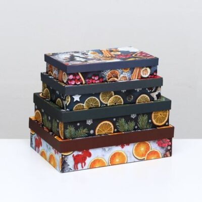 Набор коробок 4 в 1 «С Новым годом», 30×20×8 — 24×14×5 см. Подарочные коробки — идеальное решение для упаковки вашего подарка на Новый год, Рождество. Во-первых, подарочная упаковка смотрится стильно благодаря красивому дизайну. Во-вторых, очень практично и можно поместить сразу несколько презентов. В-третьих, создает интригу для человека, которому приготовили подарок. Так же коробки можно использовать для хранения аксессуаров дома.