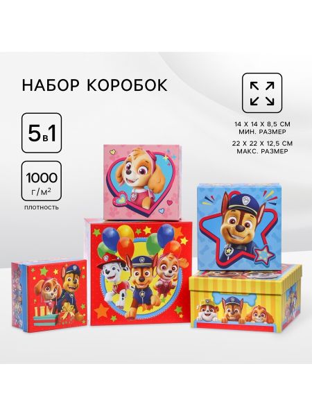 Набор коробок 5 в 1 щенячий патруль, 14 х 14 х 8.5 — 22 х 22 х 12.5 см