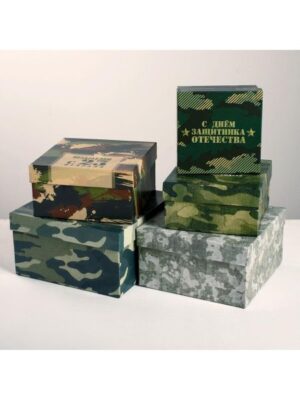Набор коробок 5 в 1, упаковка подарочная, «С 23 февраля», 14 х 14 х 8 — 22 х 22 х 12 см. <ul> <li> 14 х 14 х 8 см</li> <li> 16 х 16 х 9 см</li> <li> 18 х 18 х 10 см</li> <li> 20 х 20 х 11 см</li> <li> 22 х 22 х 12 см</li> </ul>