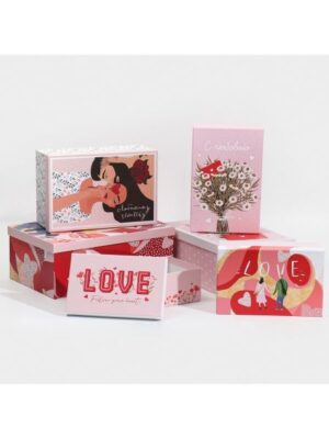 Набор коробок 6 в 1, упаковка подарочная, «Love», 20 х 12.5 х 7.5 ‒ 32.5 х 20 х 12.5 см. <ul> <li> 20 х 12.5 х 7.5 см</li> <li> 22 х 14 х 8.5 см</li> <li> 24 х 15.5 х 9.5 см</li> <li> 26 х 17 х 10 см</li> <li> 28 х 18.5 х 11.5 см</li> <li> 32.5 х 20 х 12.5 см</li> </ul>