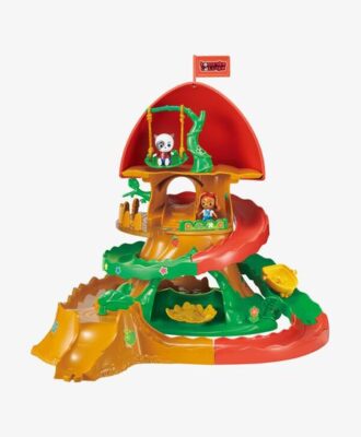 В наборе «Домик на дереве» ТМ Кошечки-Собачки 20 предметов: 2 основы для домика, тележка, 7 элементов трека, качели, флажок, 4 декоративных элемента в форме листиков, перегородка, деревянный забор, а также фигурки Жоржика и Викки высотой 5,5 см, которые могут стоять, сидеть, двигать ручками, ножками и головой. Есть много подвижных интерактивных элементов: качели, карусель, тележка и листики. Сам набор представляет собой конструктор: детали трека и декоративные элементы можно менять местами. В набор также входят наклейки для декорирования. Набор выполнен из качественного и прочного пластика с использованием разных фактур (AБС, полипропилен, ПВХ), фигурки выполнены из ПВХ. Товар сертифицирован и предназначен для детей от 3 лет. Упаковка – коробка с окном (50х35х13,5 см).