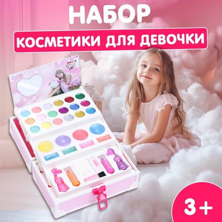 Детская косметика позволит ребёнку устраивать эксперименты со своим стилем. Набор поможет девочке подобрать оптимальные варианты для вечерних и дневных образов. Косметика без труда смывается водой или с помощью ватного диска и безопасна для детской кожи.Рекомендовано для детей старше 3 лет.Примечание: загустевший детский лак можно разбавить тёплой водой, затем хорошо встряхнуть флакон. Так он приобретёт жидкую консистенцию и не потеряет своих свойств.Состав набора:Тени для век 26 цветовПомада для губ 2 штАппликатовКисточка для макияжаБлеск для губ 2 шт