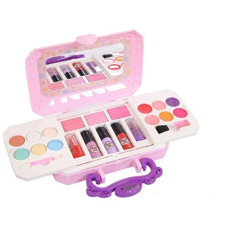 Косметика изготовлена с применением красителей на растительной основе, гипоаллергенных ароматизаторов и не включает парабены. Она безопасна для детей и не вызывает аллергических реакций. Имеет полупрозрачную текстуру. Для снятия лака достаточно аккуратно поддеть его край и снять, как плёнку. Инструкция по использованию косметики есть на упаковке. Размеры косметички в закрытом состоянии: 16 x 11 x 5 см, в открытом: 24 x 11 x 2,5 см. Пусть маленькая леди учится пользоваться косметикой безопасно для себя.