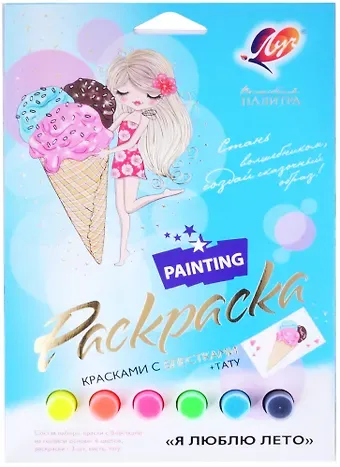 Набор красок с блестками с раскрасками «Я люблю лето»