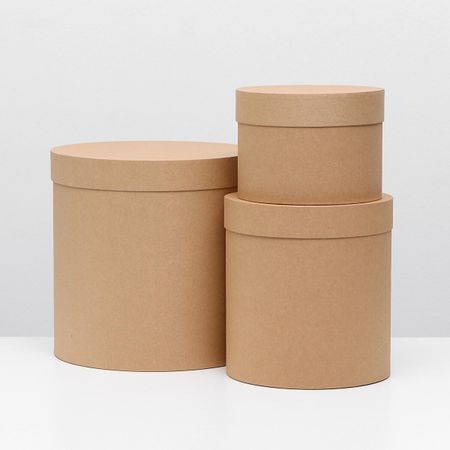 Набор круглых коробок 3в1 «Крафт однотонный», 30×30 — 16×16. Набор коробок универсальный. Изготовлена из плотного картона. Прекрасно подойдет для оформления подарка, и праздничного декора. Можно использовать для хранения аксессуаров. <strong> Преимущества:</strong> <ul> <li> плотный картон;</li> <li> оригинальное оформление;</li> <li> удобно при транспортировке.</li> </ul>