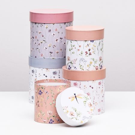 Набор круглых подарочных коробок 5 в 1 "Мини — цветы", 20×20 — 14×14 см. Набор коробок из плотного картона. Коробки из экологически чистого материала, не содержащего вредные вещества или аллергены. С такой упаковкой подарок выглядит очень стильно и оригинально. Подарочная упаковка важный атрибут каждого праздника! Внутрь коробки можно положить различные сладости, подарки и сюрпризы как для детей, так и для взрослых. <strong> Преимущества:</strong> <ul> <li> удобное хранение;</li> <li> оригинальное оформление;</li> <li> удобно при транспортировке.</li> </ul> <strong> Все размеры коробок:</strong> 20 х 20 18 х 18 16 х 16 15 х 15 14 х 14