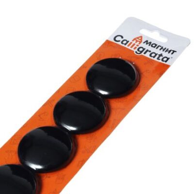 Набор магниты для доски d=4 см, 4 штук, на блистере, черные. Черные магниты для доски — ваш надежный помощник в организации пространства и упорядочивании информации. Их минималистичный дизайн и стандартный диаметр 40 мм делают их идеальными для использования как дома, так и в офисе. Никогда еще управление вашим рабочим пространством не было таким простым и стильным. <b> Особенности и преимущества</b> <ul> <li> Строгий черный цвет вписывается в любой интерьер и делает магниты универсальными.</li> <li> Комплект из четырех штук обеспечивает базовые потребности для крепления документов и заметок.</li> <li> Их круглая форма исключает острые углы, что делает их безопасными для детей.</li> <li> Высокая сила магнитного сцепления выдержит многослойные бумаги или более тяжелые материалы.</li> </ul> <b> Простота и порядок</b> С этими магнитами вы легко создадите удобную и эффективную систему организации на доске. Отличный выбор для тех, кто ценит порядок и простоту в книжном магазине, офисе или классе.