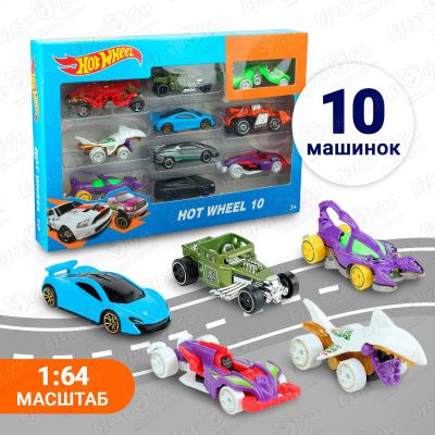 Набор машин Camaro Land Crusher Ford Shelby металлических свободый ход 10шт 1:64 в ассортименте