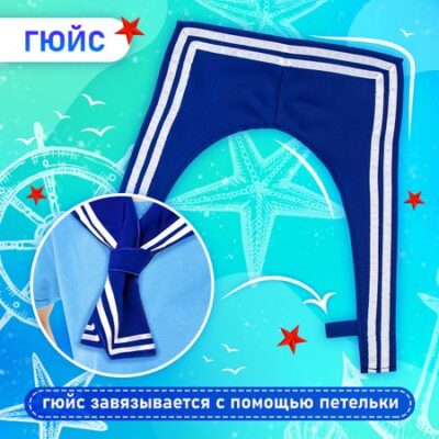 Набор моряка «Морской флот»: бескозырка р. 55–56 см, гюйс. Карнавальный набор «Морской флот» создан для тех, кто мечтает о морских приключениях. В набор входят все необходимые элементы для создания аутентичного костюма. <b> Что входит в набор</b> <ul> <li> <b> Бескозырка:</b> классический головной убор моряка. Размер — 55–56 см — подойдет большинству детей. Яркий дизайн и атласные ленты добавят образу нарядности.</li> <li> <b> Гюйс:</b> традиционный морской флажок. Легко завязывается с помощью петельки и станет стильным аксессуаром.</li> </ul> Карнавальный набор «Морской флот» — это отличный выбор для тех, кто хочет создать яркий и запоминающийся образ. Он позволит вам окунуться в атмосферу морских приключений и почувствовать себя настоящим моряком.