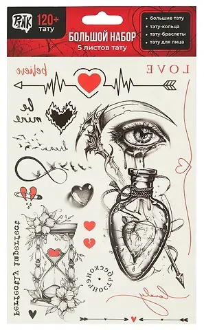 Главная » Товары для детей Набор наклеек-тату 5 листов,210х148 (Любовь) Просмотров 3 Набор наклеек-тату 5 листов,210х148 (Любовь)