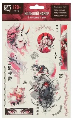 Набор наклеек-татуировок, представленный в виде пяти листов, является превосходным дополнением к вашему декору. Татуировки придают окружающим предметам и поверхностям особый шарм и оригинальность.
