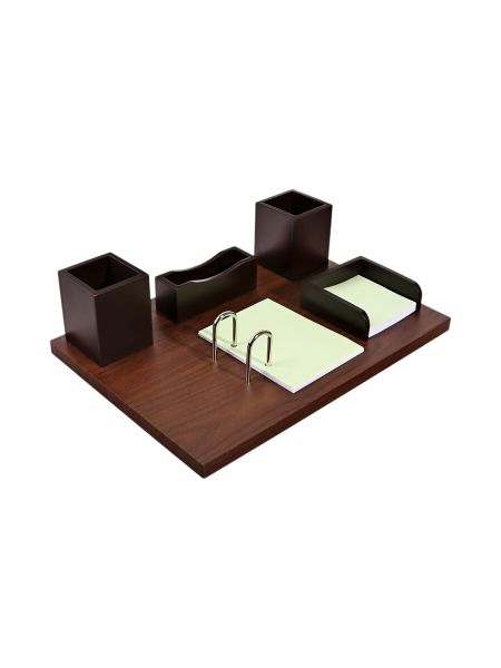 Набор настольный 5 в1, 33×23×11 см, для офиса. Создайте идеальное рабочее пространство! Деревянный настольный набор 5 в 1; это стильное и функциональное решение для вашего офиса. Организуйте свои вещи с удобством и элегантностью. <ul> <li> <strong> Многофункциональность:</strong> Пять секций обеспечивают достаточно места для хранения документов, канцелярских принадлежностей и личных вещей, всегда под рукой.</li> <li> <strong> Экологичный материал:</strong> Изготовлен из натурального дерева, что придает изделию долговечность и природную красоту. Дерево создает уютную атмосферу на рабочем столе.</li> <li> <strong> Универсальный дизайн:</strong> Отсутствие рисунка делает набор универсальным, он гармонично впишется в любой интерьер, будь то офис или домашний кабинет.</li> <li> <strong> Компактные размеры:</strong> Набор занимает минимум места, при этом обеспечивая максимум удобства. Идеально подходит для небольших рабочих пространств.</li> </ul>