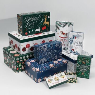 Набор новогодних подарочных коробок 10 в 1 «Сказочного года», 12 х 7 х 4 — 32.5 х 20 х 12.5 см, Новый год. <ul> <li> 12 х 7 х 4 см</li> <li> 14 х 8.4 х 4.5 см</li> <li> 15 х 9.5 х 5.5 см</li> <li> 18 х 11 х 6.5 см</li> <li> 20 х 12.5 х 7.5 см</li> <li> 22 х 14 х 8.5 см</li> <li> 24 х 15.5 х 9.5 см</li> <li> 26 х 17 х 10 см</li> <li> 28 х 18.5 х 11.5 см</li> <li> 32.5 х 20 х 12.5 см</li> </ul>