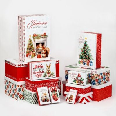 Главная » Товары для детей Набор новогодних подарочных коробок 15 в 1 Просмотров 4 Набор новогодних подарочных коробок 15 в 1 «Уютный Новый год», 12 х 7 х 4 см — 46.5 х 30 х 17.5 см. Дарите Счастье