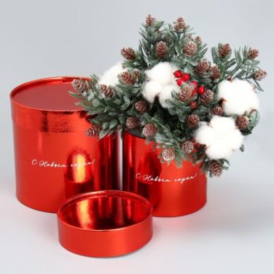 Набор новогодних подарочных коробок 2 в 1 круглые «С Новым годом!», красный металлик, 12 х 12, 15 х 15 см. Размеры коробок: 12 х 12 х 12 см 15 х 15 х 15 см
