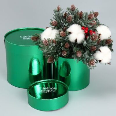 Набор новогодних подарочных коробок 2 в 1 круглые «С Новым годом», зеленый металлик, 12 х 12, 15 х 15 см. Размеры коробок: 12 х 12 х 12 см 15 х 15 х 15 см