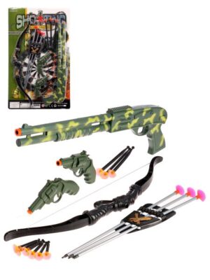 Набор оружия «Рэмбо», 17 предметов. Набор оружия «Рэмбо», 17 предметов – все, что нужно для увлекательной игры! Этот комплект – настоящая находка для юных любителей приключений и ролевых игр! Создан для активного досуга и развития фантазии. <strong> Особенности набора</strong> <ul> <li> В наборе 17 предметов для разнообразной игры. Включает ружье, пистолеты, лук, стрелы и другие аксессуары.</li> <li> Яркий и реалистичный дизайн.</li> <li> Безопасные материалы, подходящие для детей от 3 лет.</li> <li> Стрелы с мягкими наконечниками.</li> <li> Прочная конструкция, рассчитанная на активное использование.</li> </ul> <strong> Игра и польза</strong> <ul> <li> Развивает ловкость, меткость и координацию движений.</li> <li> Стимулирует физическую активность и командное взаимодействие.</li> <li> Пробуждает воображение и помогает придумать захватывающие игровые сценарии.</li> </ul> С этим набором ваш ребенок сможет почувствовать себя настоящим героем, участвуя в невероятных приключениях! Отличный выбор для игр в компании друзей или самостоятельных миссий.