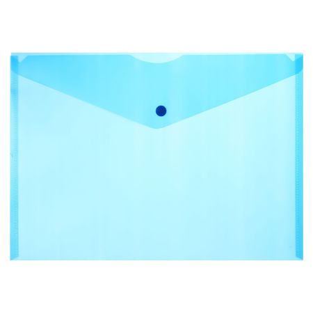 Набор папок-конвертов на кнопке 5 штук, А4, 120 мкм, Calligrata, прозрачные, синие. Папка-конверт на кнопке Calligrata, формата А4, изготовлена из пластика толщиной 120мкм. Размер составляет 240 х 330 мм. Предназначена для хранения и транспортировки бумаг. Изготовлена из пластика, плотно закрывается клапаном с кнопкой. Защищает документы от влаги и пыли. В ассортименте яркие насыщенные цвета. Отпускается одним набором по 5 штук <b> Характеристики:</b> <li> Размер: 24×33 см</li> <li> Формат: А4;</li> <li> Цвет: синий</li> <li> Вид товара папка-конверт</li> <li> Способ фиксации кнопка</li> <li> Материал пластик</li> <li> Ориентация горизонтальная</li> <li> Толщина материала 120 мкм</li> <li> Внешняя перфорация нет</li> <li> Вместимость, в листах 100</li> <li> С расширением нет</li> <li> Текстура глянцевая</li>