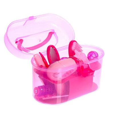 Набор парикмахера «Модный образ», розовый, 19 предметов. С набором парикмахера «Модный образ» юная леди легко и быстро сделает любую прическу и очарует всех вокруг! Чтобы стать настоящей звездой вечеринки, достаточно воспользоваться наборчиком. В него входят: фен, разные виды расчесок, плойка, заколочки, зеркальце, духи и многое другое! Девочка почувствует себя маленькой принцессой, придумает и воплотит множество увлекательных сюжетов. Такие игры способствуют развитию воображения, эмоционального восприятия, мелкой моторики и тактильных ощущений. Наводя красоту, девочка осваивает социальные роли, совершенствует эстетический вкус и проецирует в игру модели поведения взрослых. Для детей старше 3 лет.