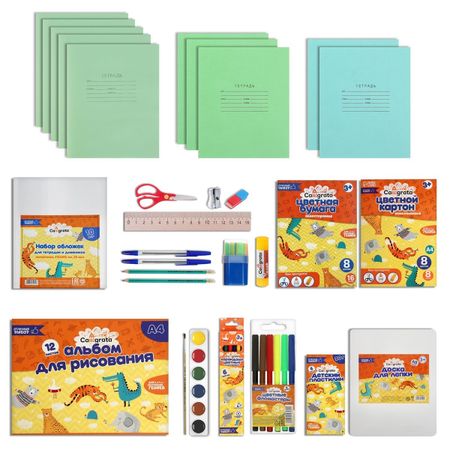 Набор первоклассника в папке Calligrata «Коты», 40 предметов. <strong> Набор первоклассника в папке Calligrata «Коты», 40 предметов</strong> Набор школьных принадлежностей в папке Calligrata «Коты» предлагает идеальное решение для выпускников детского сада и первоклассников. В набор входит 40 предметов, от ручек до акварельных красок, все самое необходимое для успешного начала учебного года. Этот канцелярский набор разработан на основе рекомендаций учителей начальных классов и пожеланий родителей, что гарантирует его высокую функциональность и соответствие требованиям безопасности детских товаров. Яркая текстильная папка с эргономичным наполнением станет не только уникальным и практичным подарком, но и вдохновит на любые творческие открытия. В наборе присутствует качественная канцелярия для школы: тетради, цветные карандаши, пластилин, ножницы и многое другое. Такой подарок обеспечит Вашего ребенка всем самым необходимым и создаст положительное отношение к учебе. Набор первоклассника Calligrata «Коты» — это не просто канцелярия, а продуманный канцелярский бокс, который укомплектован в красочную функциональную папку. Отличный выбор для тех, кто хочет подготовить юного ученика к школе с любовью и вниманием к деталям. <strong> В набор первоклассника Calligrata «Коты», 40 предметов входят:</strong> <ul> <li> Тетрадь 12 листов в клетку — 5 шт.</li> <li> Тетрадь 12 листов в косую линию — 3 шт.</li> <li> Тетрадь 12 листов в линию — 2 шт.</li> <li> Ручка шариковая (синяя) — 2 шт.</li> <li> Пластилин — 1 набор</li> <li> Бумага цветная А4 — 1 набор</li> <li> Картон цветной А4 — 1 набор</li> <li> Карандаши цветные — 1 набор</li> <li> Доска для лепки со стеком — 1 набор</li> <li> Карандаш чернографитный — 2 шт.</li> <li> Ластик — 1 шт.</li> <li> Точилка — 1 шт.</li> <li> Ножницы — 1 шт.</li> <li> Краски акварельные — 1 шт.</li> <li> Кисть — 1 шт.</li> <li> Альбом для рисования — 1 шт.</li> <li> Клей-карандаш — 1 шт.</li> <li> Линейка — 1 шт.</li> <li> Фломастеры — 1 набор</li> <li> Обложки для тетрадей — 10 шт.</li> <li> Счетные палочки — 1 набор</li> <li> Текстильная папка — 1 шт.</li> </ul> <strong> Набор дополнительно упакован в термоусадку 0.6 мм.</strong> <strong> Уважаемые покупатели! Обращаем Ваше внимание на то, что товар из набора может быть заменен на соответствующий аналог.</strong>