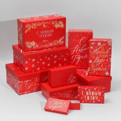 Набор подарочных коробок 10 в 1 «Время чудес», 12 х 7 х 4 — 32.5 х 20 х 12.5 см, Новый год. <ul> <li> 12 х 7 х 4 см</li> <li> 14 х 8.4 х 4.5 см</li> <li> 15 х 9.5 х 5.5 см</li> <li> 18 х 11 х 6.5 см</li> <li> 20 х 12.5 х 7.5 см</li> <li> 22 х 14 х 8.5 см</li> <li> 24 х 15.5 х 9.5 см</li> <li> 26 х 17 х 10 см</li> <li> 28 х 18.5 х 11.5 см</li> <li> 32.5 х 20 х 12.5 см</li> </ul>