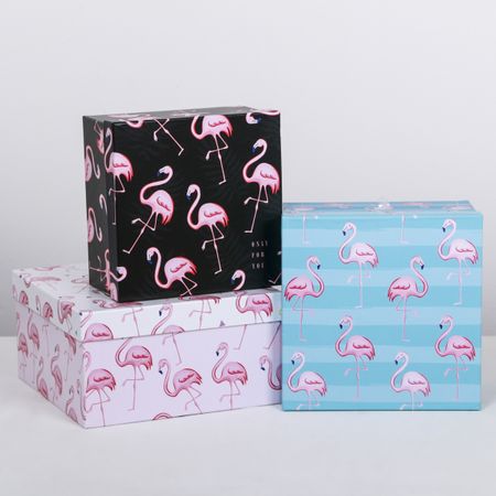 Набор подарочных коробок 3 в 1 «Фламинго», 18 × 18 × 10‒22 × 22 × 12 см. <ul> <li> 18 х 18 х 10 см</li> <li> 20 х 20 х 11 см</li> <li> 22 х 22 х 12 см</li> </ul>