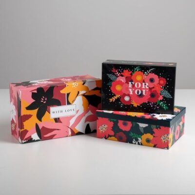Набор подарочных коробок 3 в 1 «Цветочный», 26 × 17 × 10‒32.5 × 20 × 12.5 см. <ul> <li> 26 х 17 х 10 см</li> <li> 28 х 18.5 х 11.5 см</li> <li> 32.5 х 20 х 12.5 см</li> </ul>