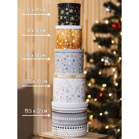 Набор подарочных коробок 5 в 1 «Изморозь», 13 х 14‒19.5 х 22 см, Новый год. <li> 13 х 14 см</li> <li> 14 х 16 см</li> <li> 15 х 18 см</li> <li> 17.5 х 20</li> <li> 19.5 х 22 см</li>