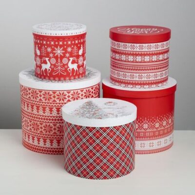 Набор подарочных коробок 5 в 1 «Скандинавские узоры», 13 х 14‒19.5 х 22 см, Новый год. <li> 13 х 14 см</li> <li> 14 х 16 см</li> <li> 15 х 18 см</li> <li> 17.5 х 20</li> <li> 19.5 х 22 см</li>