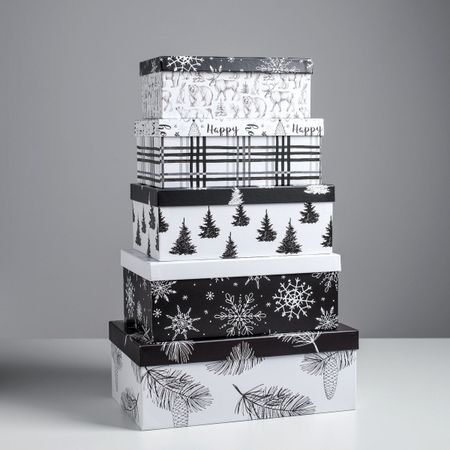 Набор подарочных коробок 5 в 1 «Черно-белый», 32,5 х 20 х 12,5 — 22 х 14 х 8,5 см, Новый год. <ul> <li> 22 х 14 х 8.5 см</li> <li> 24 х 15.5 х 9.5 см</li> <li> 26 х 17 х 10 см</li> <li> 28 х 18.5 х 11.5 см</li> <li> 32.5 х 20 х 12.5 см</li> </ul>
