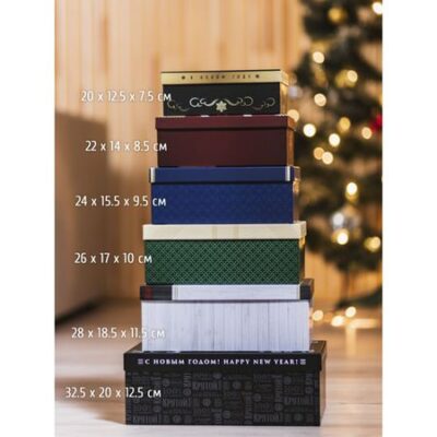 Набор подарочных коробок 6 в 1 «Алкогольный», 20 х 12.5 х 7.5 — 32.5 х 20 х 12.5 см, Новый год. <ul> <li> 20 х 12,5 х 7,5 см</li> <li> 22 х 14 х 8.5 см</li> <li> 24 х 15,5 х 9,5 см</li> <li> 26 х 17 х 10 см</li> <li> 28 х 18,5 х 11,5 см</li> <li> 32,5 х 20 х 12,5 см</li> </ul>