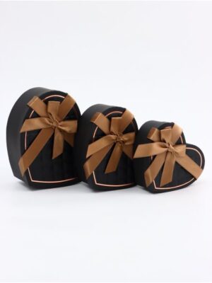 Набор подарочных коробок сердце 3 в 1, 22×20×9; 18.5×17×7.5; 1 6×14×6 см. <strong> Набор коробок «Сердца» в трех размерах</strong> — идеальный выбор для хранения и презентации ваших любимых вещей. Эти элегантные коробки выполнены из высококачественного картона и бумаги. <strong> Представлены в трех разных размерах:</strong> <ul> <li> 22x20x9 см,</li> <li> 19x17x7,5 см</li> <li> 16x14x6 см.</li> </ul> Благодаря своей уникальной форме в виде сердец, эти коробки станут прекрасным дополнением к любому интерьеру и подчеркнут вашу индивидуальность. Они идеально подходят для хранения ювелирных изделий, косметики, аксессуаров, книг, сувениров и других предметов, которые требуют особого внимания и заботы. Набор коробок «Сердца» станет отличным подарком для ваших близких и друзей, ведь он сочетает в себе стиль, качество и функциональность. Эти коробки прослужат долгое время и будут радовать вас своим внешним видом и удобством использования.