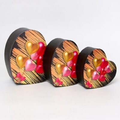Набор подарочных коробок сердце 3 в 1, 22×20×9/19×17×7.5/16×13.5×6 см. <strong> Набор коробок «Сердца» в трех размерах</strong> — идеальный выбор для хранения и презентации ваших любимых вещей. Эти элегантные коробки выполнены из высококачественного картона и бумаги. <strong> Представлены в трех разных размерах:</strong> <ul> <li> 22x20x9 см,</li> <li> 19x17x7,5 см</li> <li> 16×13,5×6 см.</li> </ul> Благодаря своей уникальной форме в виде сердец, эти коробки станут прекрасным дополнением к любому интерьеру и подчеркнут вашу индивидуальность. Они идеально подходят для хранения ювелирных изделий, косметики, аксессуаров, книг, сувениров и других предметов, которые требуют особого внимания и заботы. Набор коробок «Сердца» станет отличным подарком для ваших близких и друзей, ведь он сочетает в себе стиль, качество и функциональность. <strong> Эти коробки прослужат долгое время и будут радовать вас своим внешним видом и удобством использования.</strong>