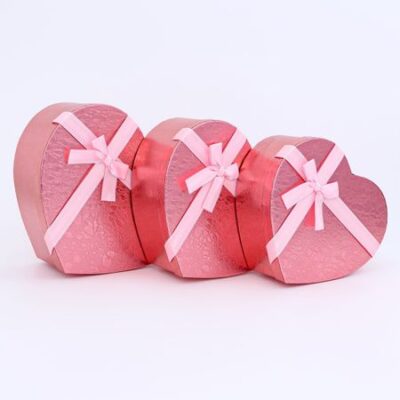Набор подарочных коробок сердце 3 в 1, 31×27×13.3; 28×25×11.7; 26×23×10.3 см. <strong> Набор коробок «Сердца» в трех размерах</strong> — идеальный выбор для хранения и презентации ваших любимых вещей. Эти элегантные коробки выполнены из высококачественного картона и бумаги. <strong> В комплект входят три коробки разных размеров:</strong> <ul> <li> Большая коробка: 31 x 27 x 13,3 см.</li> <li> Средняя коробка: 28 x 25 x 11,7 см.</li> <li> Маленькая коробка: 26 x 23 x 10,3 см.</li> </ul> Благодаря своей уникальной форме в виде сердец, эти коробки станут прекрасным дополнением к любому интерьеру и подчеркнут вашу индивидуальность. Они идеально подходят для хранения ювелирных изделий, косметики, аксессуаров, книг, сувениров и других предметов, которые требуют особого внимания и заботы. Набор коробок «Сердца» станет отличным подарком для ваших близких и друзей, ведь он сочетает в себе стиль, качество и функциональность. <strong> Эти коробки прослужат долгое время и будут радовать вас своим внешним видом и удобством использования.</strong> <strong> Применение</strong> Данное изделие выполнено вручную, поэтому могут присутствовать незначительные следы труда