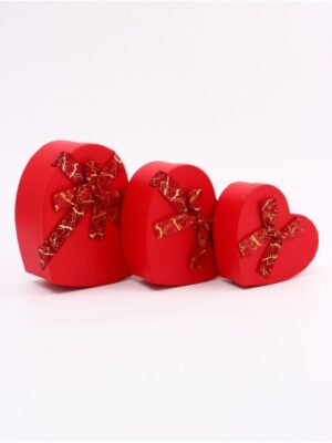 Набор подарочных коробок сердце 3 в 1, красный с бантом, 22×20×9; 18.5×17×7.5; 16×14×6 см. <strong> Набор коробок «Сердца» в трех размерах</strong> — идеальный выбор для хранения и презентации ваших любимых вещей. Эти элегантные коробки выполнены из высококачественного картона и бумаги. <strong> Представлены в трех разных размерах:</strong> <ul> <li> 22x20x9 см,</li> <li> 19x17x7,5 см</li> <li> 16x14x6 см.</li> </ul> Благодаря своей уникальной форме в виде сердец, эти коробки станут прекрасным дополнением к любому интерьеру и подчеркнут вашу индивидуальность. Они идеально подходят для хранения ювелирных изделий, косметики, аксессуаров, книг, сувениров и других предметов, которые требуют особого внимания и заботы. Набор коробок «Сердца» станет отличным подарком для ваших близких и друзей, ведь он сочетает в себе стиль, качество и функциональность. Эти коробки прослужат долгое время и будут радовать вас своим внешним видом и удобством использования.