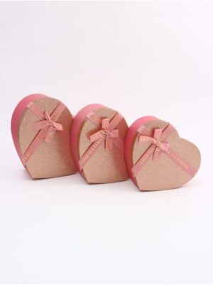 Набор подарочных коробок сердце 3 в 1, розовое золото с бантом «Любовь вечна», 31×27×13.3; 28×25×11.7; 26×23×10.3 см. <strong> Набор коробок «Сердца» в трех размерах</strong> — идеальный выбор для хранения и презентации ваших любимых вещей. Эти элегантные коробки выполнены из высококачественного картона и бумаги. <strong> Представлены в трех разных размерах:</strong> <ul> <li> 31x27x13,3 см,</li> <li> 28x25x11,7 см</li> <li> 26x23x10,3см.</li> </ul> Благодаря своей уникальной форме в виде сердец, эти коробки станут прекрасным дополнением к любому интерьеру и подчеркнут вашу индивидуальность. Они идеально подходят для хранения ювелирных изделий, косметики, аксессуаров, книг, сувениров и других предметов, которые требуют особого внимания и заботы. Набор коробок «Сердца» станет отличным подарком для ваших близких и друзей, ведь он сочетает в себе стиль, качество и функциональность. Эти коробки прослужат долгое время и будут радовать вас своим внешним видом и удобством использования.