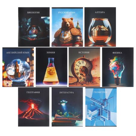 Набор предметных тетрадей 48 листов, Calligrata «Школьный стиль», 10 предметов. Набор тетрадей «Школьный стиль» — идеальный выбор для учеников. Включает 10 тетрадей по 48 листов, каждая в пластиковой обложке. Листы в клетку, белизна блока 95-100%. Справочный материал поможет в учебе. <b> Особенности</b> <ul> <li> Пластиковая обложка.</li> <li> Листы в клетку.</li> <li> Белые листы.</li> <li> Справочный материал для учебы.</li> <li> Подходит для разных школьных предметов.</li> <li> В комплект входит 10 предметов: алгебра, английский язык, биология, география, геометрия, история, литература, русский язык, физика, химия</li> <li> Белые листы, писать можно ручками с разными типами чернил.</li> </ul> <b> Удобство и качество</b> Тетради удобны в использовании и долговечны благодаря пластиковой обложке. Белизна листов обеспечивает комфорт при письме. Справочный материал поможет ученикам в освоении школьной программы.