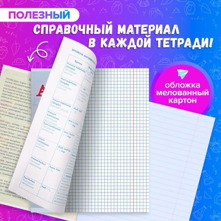 Набор предметных тетрадей А5, 36 листов, Сalligrata «Предметы», 10 предметов. Набор предметных тетрадей на 36 листов — это удобное решение для школьников, которые хотят организовать свои учебные материалы. В комплекте 10 тетрадей с разными предметными дизайнами и справочными материалами, что делает их полезными для учебы. Мягкая обложка из мелованного картона и качественная бумага внутри обеспечивают комфорт при использовании. <b> Особенности</b> <ul> <li> 10 тетрадей в наборе — достаточно для всех школьных предметов.</li> <li> 36 листов в каждой тетради — оптимальный объем для конспектов и записей.</li> <li> Обложка из мелованного картона с ярким дизайном — стильно и практично.</li> <li> Блок офсет с белизной 95-100% — комфорт для глаз при чтении и письме.</li> <li> Линовка в клетку и линейку — подходит для разных задач.</li> <li> Справочные материалы внутри — помощь в учебе.</li> </ul> <b> Почему выбирают этот набор?</b> Набор предметных тетрадей помогает школьникам организовать учебный процесс. Яркие обложки с тематическими дизайнами легко отличать друг от друга, а справочные материалы внутри делают тетради еще полезнее. Это не просто тетради, а инструмент для успешной учебы. <b> Для кого?</b> Набор создан для школьников, которые хотят быть организованными и успевать по всем предметам. Он подойдет как для младших классов, так и для старшеклассников. Универсальный дизайн и функциональность делают его отличным выбором для учебы.