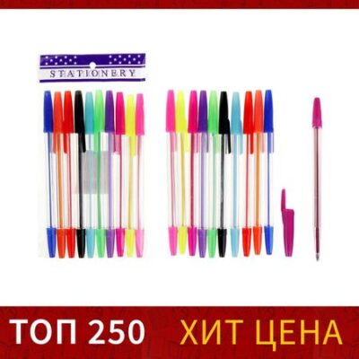 Набор ручек шариковых 10 цветов, корпус прозрачный, с цветными колпачками. Набор ручек шариковых 10цв. корпус прозрачный с цветными колпачками — набор классических шариковых ручек. Если вы ценитель качества, удобства и не любите отвлекаться на разные мелочи, то этот товар для вас. Шариковый пишущий узел и паста на масляной основе сделали такой вид ручек самым распространенным и популярным во всем мире. Шариковые ручки самые экономичные, их надолго хватает. Писать этими ручками легко и удобно, густые чернила не растекаются на бумаге и не вытекают при переноске. Выгодно заказывайте шариковые ручки оптом на нашем сайте – выбирайте практичность и надежность.