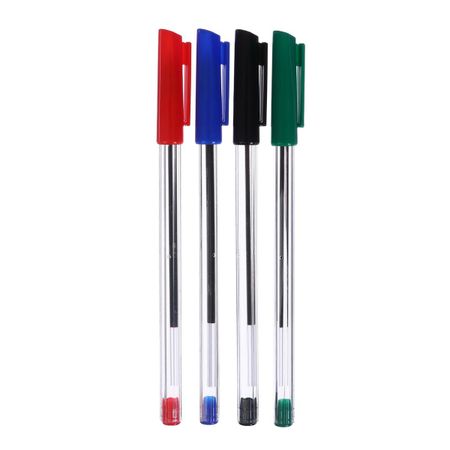 Набор ручек шариковых 4 цвета, стержень 1,0 мм синий, красный, черный, зеленый, корпус прозрачный. Шариковая ручка — практичный и всегда нужный набор. Если вы ценитель качества, удобства и не любите отвлекаться на разные мелочи, то этот товар для вас. Шариковый пишущий узел и паста на масляной основе сделали такой вид ручек самым распространенным и популярным во всем мире. Шариковые ручки самые экономичные, их надолго хватает. Писать этими ручками легко и удобно, густые чернила не растекаются на бумаге и не вытекают при переноске.