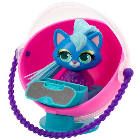 Игрушка из пластмассы, в наборе, с маркировкой “Silverlit”, “Curli Girls”. В набор входят: переносной стул-парикмахерская — 1 шт., ручка для переноски стула — 1 шт., фигурка питомца – 1 шт., блестящее платье для питомца — 1 шт., бусинки — 3 шт., спиралька для волос — 1 шт., подставка — 1 шт., зеркальце — 1 шт., индикатор температуры – 1 шт., набор аксессуаров, инструкция – 1 шт.