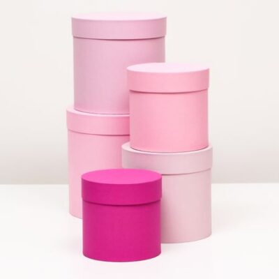 Набор шляпных подарочных коробок 5 в 1« Феерия» , розовый, 23×23 — 14×14 см. Набор коробок универсальный. Изготовлен из плотного картона. Прекрасно подойдет для оформления подарка, и праздничного декора. Можно использовать для хранения аксессуаров. <strong> Преимущества:</strong> <ul> <li> плотный картон;</li> <li> оригинальное оформление;</li> <li> удобно при транспортировке.</li> </ul> <strong> Дополнительно</strong> Все размеры коробок: 23 х 23 х 25 см; 20 х 20 х 20 см; 18 х 18 х 18 см; 16 х 16 х 16 см; 15 х 15 х 15 см.