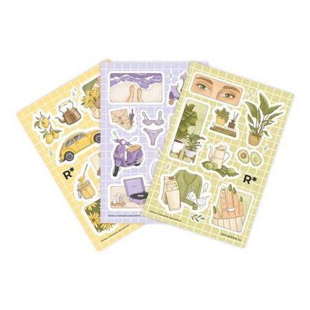 С помощью набора стикеров «Цветные моменты» вы с легкостью добавите в планирование красок и эмоций:Лавандовый — романтика, успокоение и расслабление,Желтый — тепло, позитив и солнечный свет,Зеленый — жизнь, природа и энергия.Также данными стикерами вы можете разделять свое планирование. Например, по месяцам: в июне использовать стикер «Желтые лимоны», в июле — «Лавандовое море», а в августе — «Зеленые глаза».