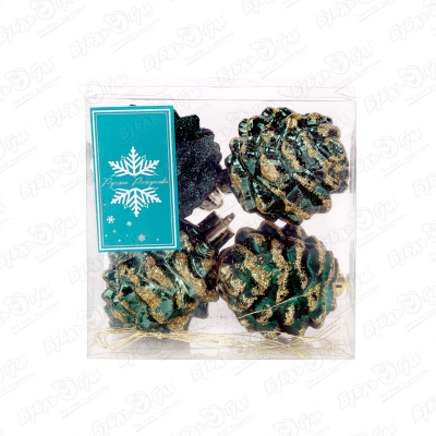 Набор украшений елочных шишка сосновая с золотыми блестками зеленая 4шт 5см