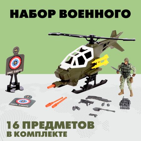 Набор военного «Пилот вертолета», 16 предметов. Набор «Пилот вертолета» — отличный выбор для юных исследователей неба. В комплекте все необходимое для увлекательных приключений в мире авиации. <strong> Особенности</strong> <ul> <li> В наборе 16 деталей, включая фигурку пилота и мини-вертолет.</li> <li> Игрушки изготовлены из безопасного пластика.</li> <li> Подходит для детей от 3 лет.</li> <li> Детали имеют продуманный дизайн и удобный размер для детских рук.</li> <li> Комплект можно дополнять другими игрушками военной или авиационной тематики.</li> </ul> <strong> Развитие через игру</strong> Игра с набором помогает: <ul> <li> Развивать воображение и творческое мышление.</li> <li> Улучшать мелкую моторику при работе с деталями.</li> <li> Формировать интерес к профессии и технике.</li> </ul> Набор станет идеальным подарком для любителей военной техники и полетов. Играйте, создавайте сценарии и исследуйте мир авиации вместе!
