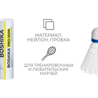 Набор воланов для бадминтона BOSHIKA PRO-200N, 6 шт., цвет белый. Воланы изготовлены из нейлона и пробки из тай-волокна. Предназначены для частых практических занятий или тренировок новичков и спортсменов-любителей. Скорость: средняя.