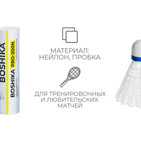 Набор воланов для бадминтона boshika pro-200n, 6 шт., цвет белый