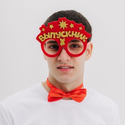Набор выпускника «Умный выпускник» 2 предмета: очки, галстук-бабочка, красный. Карнавальный набор «Умный выпускник» — эффектное дополнение к выпускному костюму для студентов. Бабочка прекрасно подчеркнет образ, а очки с блестками добавят игривости. <b> В набор входит:</b> <ul> <li> черная бабочка из полиэстера (размер регулируется);</li> <li> пластиковые очки с надписью из блесток.</li> </ul> <b> Особенности набора</b> <ul> <li> Универсальные очки подходят на любой размер головы. Сделаны из гладкого пластика.</li> <li> Бабочка сделана из полиэстера. Длина ленты регулируется c помощью фурнитуры.</li> </ul> Желаем вам провести этот праздник с чудесным настроением и сделать множество памятных фото!